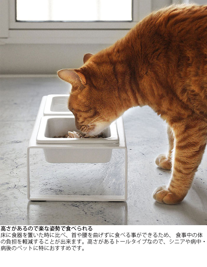 高さのあるご飯台なので、ご飯中に 手で猫皿を押すくせのある猫ちゃんにお困りの方に。