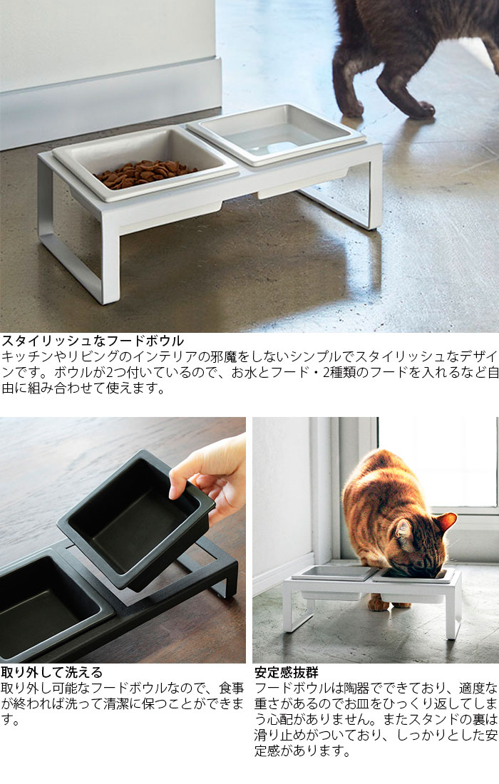 商品説明商品詳細 フードとお水や、2種類のフードなど、自由に組み合わせて使えるボウルとスタンドのセット。