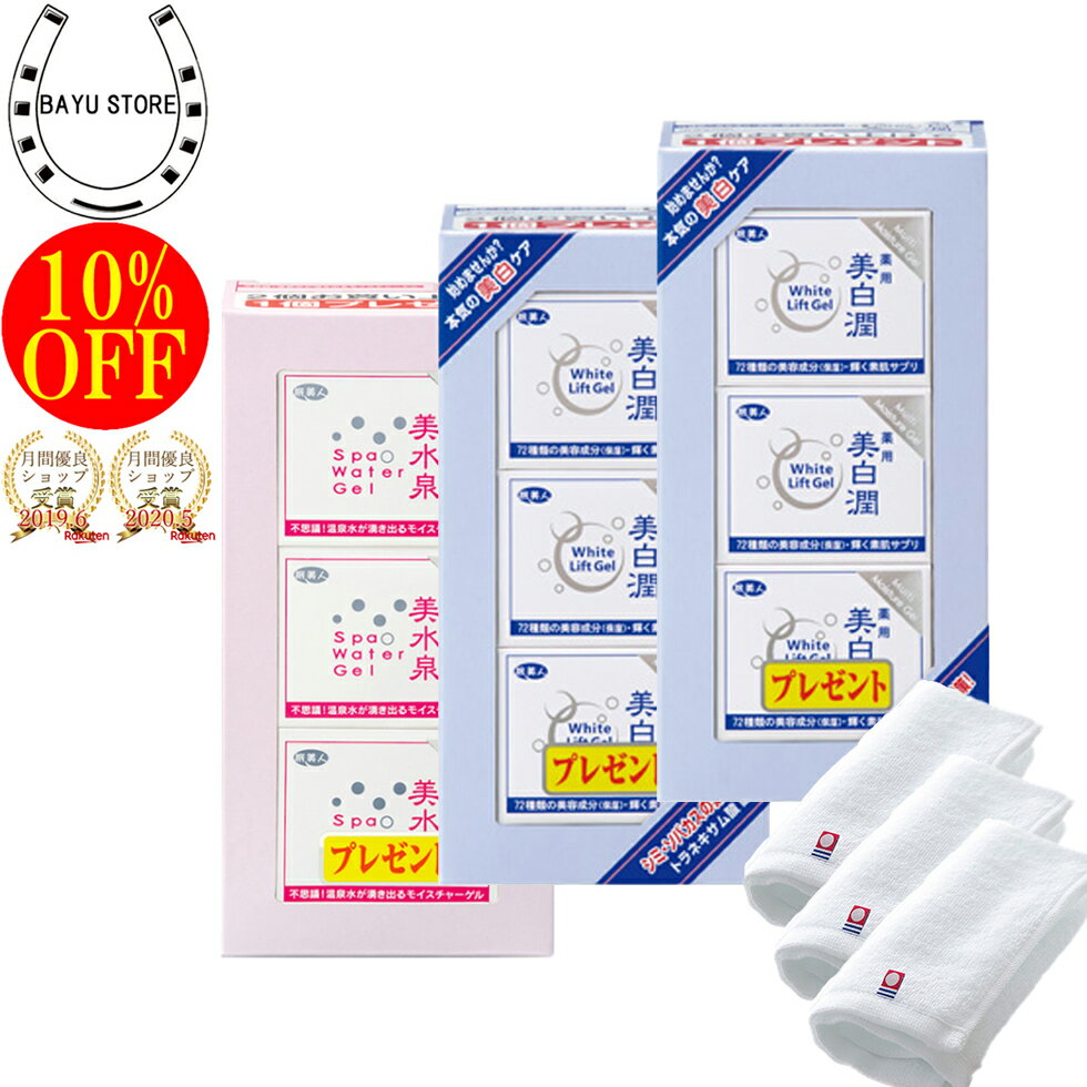 今治タオル付+10%OFF! アズマ商事 美水泉スパウォーターゲル 1箱 美白潤ホワイトリフトゲル 2箱 セット 旅美人 美水泉 美白潤 アズマ商事のオールインワンジェル 送料無料